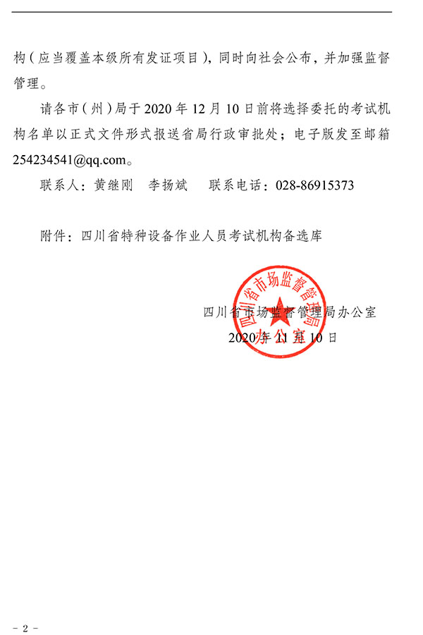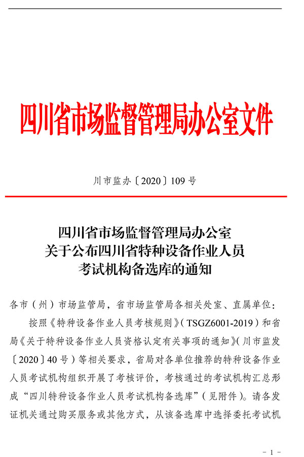 關(guān)于公布四川省特種設備作業(yè)人員考試機構備選庫的通知