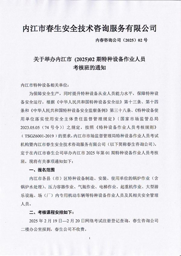 2025年春生公司第2期特種設備作業(yè)人員考核通知